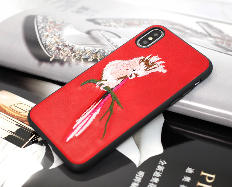 Embroidery pu leather case for iPhone X/Xs